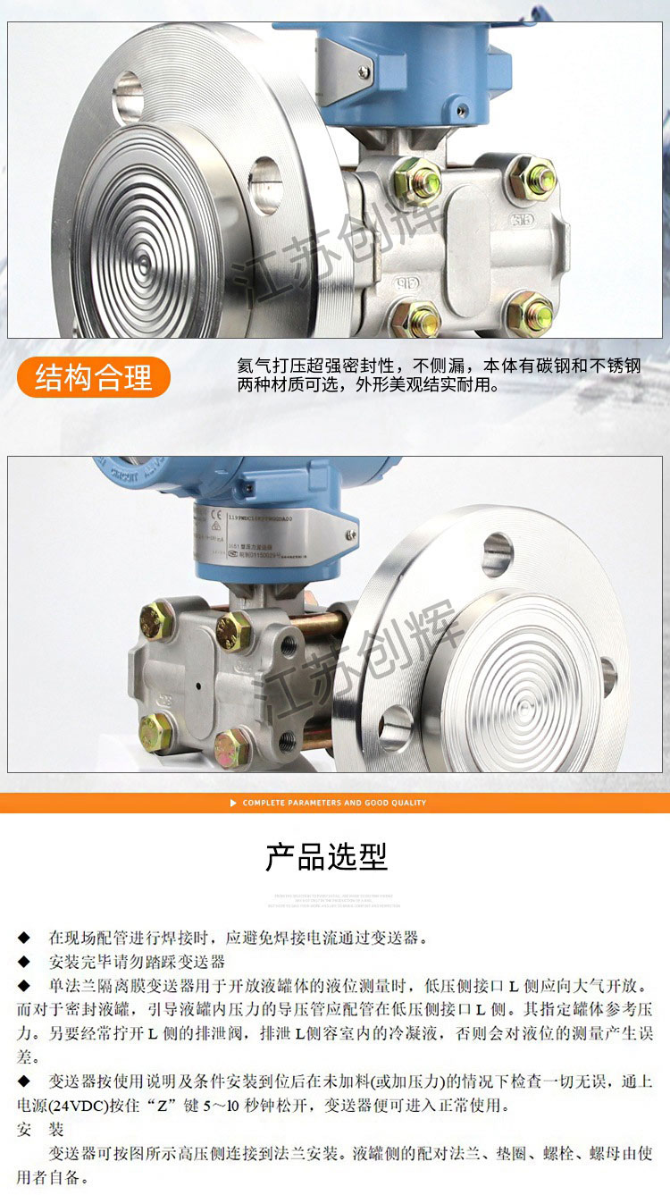 單法蘭差壓變送器采用全密封焊接結(jié)構(gòu) 外形結(jié)構(gòu)多樣化、采用耐高溫電路板 傳感器抗干擾強(qiáng)、長(zhǎng)期穩(wěn)定性好、防雷擊、防射頻干擾、高精度、高穩(wěn)定性、316不銹鋼隔離膜片結(jié)構(gòu)(或者鉭膜片)、多種量程選擇、用戶方便調(diào)試。