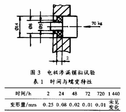 電極滲漏模擬試驗如圖3。電極密封面時間與變特性測試數(shù)據(jù)如表1